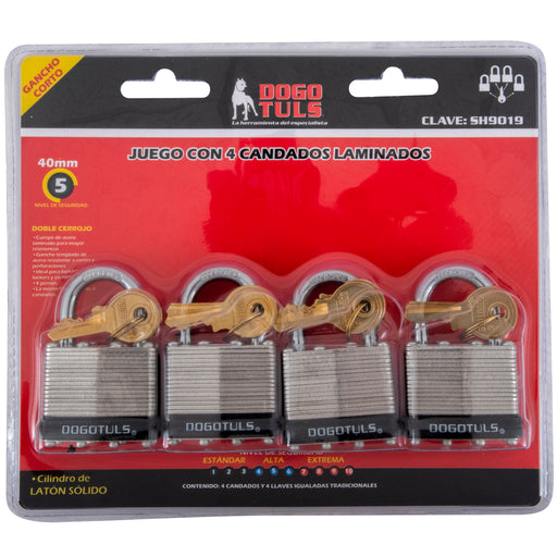 CANDADO JGO 4PZ LAMINADO 40MM CORTO