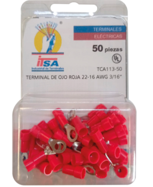 TERMINAL DE OJO ROJA 3/16" 50 PZAS